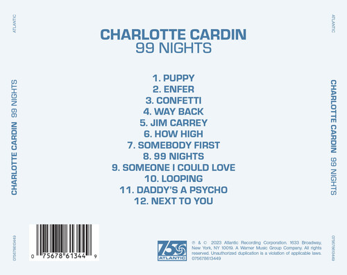 Multi JUNO-winning Canadian singer/songwriter Charlotte Cardin has released "Jim Carrey," the fourth offering from her stellar sophomore album 99 Nights. The playful, upbeat track, partially inspired by the acclaimed actor of it's title, is a love letter to personal freedom as Charlotte repeats in the anthemic chorus, "Goodbye my worthless ego / Without you I'm finally free, oh." "Jim Carrey" follows a string of impressive singles, "99 Nights," "Confetti" and "Looping," all of which garnered widespread excitement and praise from the likes of Billboard, V Magazine, UPROXX and more. Cardin carefully assembled what would become 99 Nights while on the road in 2021. After initial sessions in Montréal, she wrote and recorded in London, Los Angeles, and Toronto to "fuel a creative free flow." She shares, "We called it 99 Nights, because it was a big journey through all of these worlds I needed to explore in order to touch base with the most important things in my life. I realized I needed to get the f*** out of where I was. The 99 Nights are a symbol of one chapter closing and another beginning. It's nostalgic because there's an ending, but it's very hopeful since I'm starting over. The first few months of the process traced a path for the sound, emotion, and stories I would be sharing, hence the title." TRACKLISTING 1. Puppy 2. Enfer 3. Confetti 4. Way Back 5. Jim Carrey 6. How High 7. Somebody First 8. 99 Nights 9. Someone I Could Love 10. Looping 11. Daddy's A Psycho 12. Next to You.