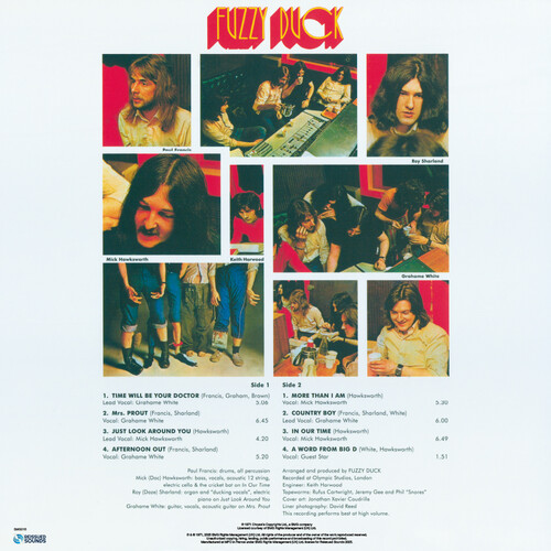 Released in 1971, Fuzzy Duck is a cult classic of British progressive rock, blending hard-edged riffs with swirling organ textures and psychedelic flair. The album showcases the raw energy and musical dexterity of a short-lived but formidable London-based quartet. Featuring Mick Hawksworth on bass and vocals, Roy Sharland on Hammond organ, Paul Francis on drums, and Garth Watt-Roy on guitar and vocals, the band delivers a sound that's both muscular and melodic. Their only studio album is a showcase of tight arrangements, extended instrumental passages, and a gritty, underground aesthetic. With roots in bands like Andromeda, Killing Floor, and The Crazy World of Arthur Brown, the members brought seasoned experience and a fearless approach to experimentation. Fuzzy Duck captures the spirit of early '70s rock with a progressive edge, appealing to fans of Deep Purple, Atomic Rooster, and Uriah Heep. The production is unpolished in the best way-raw, immediate, and full of character. Ideal for collectors of obscure prog and heavy psych, this LP remains a prized gem in vinyl circles.