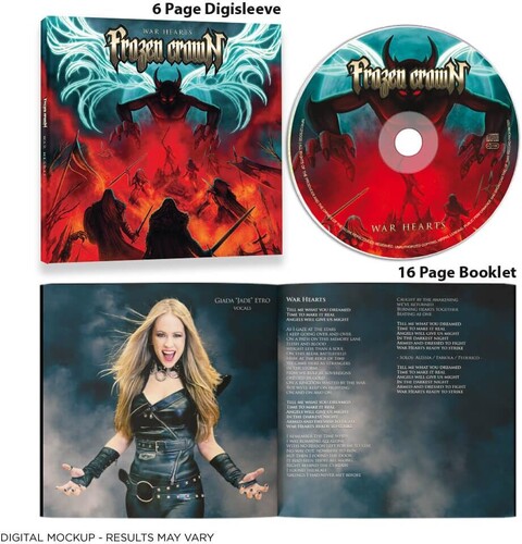 2024 release from the Italian power metal band. This marks the band's fifth album in their seven-year career and their first as a six-piece band, capturing the essence of Frozen Crown's dynamic sound brimming with powerful riffs, unforgettable melodies, and raw energy. Get ready to experience their powerful live performances as the band heads out on tour with Kamelot in the fall of this year. Formed in 2017, Frozen Crown has garnered significant media exposure with their previous four albums and built a dedicated following with their mixture of power metal, old-school speed and heavy metal. Addressing themes of self-improvement, awareness, personal growth and inner struggles, album opener and title track "War Hearts" is about fighting for your dreams in the darkest of nights and creates a powerful and uplifting message of always staying strong, making it through the storm as war angels. Carrying on this powerful message, the fast-paced "Steel And Gold" creates an uplifting atmosphere with energetic harmonies while "I Am The Wind" features soaring choruses with dual vocals from frontwoman Jade and guitarist Federico, ingenious guitar riffs, and perfectly blended drums, while the lyrics inspire listeners to let go like the wind and rise to shine again. To wrap up the album, tracks like "Edge of Reality", inspired by the '86 Highlander movie, and "Bloodlines", referencing the Vampire: The Masquerade series of board and video games, showcase the band's colorful storytelling. Frozen Crown constantly define and refine their sound, pushing their trademark elements to new levels of complexity without forgetting the characteristic catchy hooks. War Hearts exceeds their previous successes and solidifies their place in the global metal scene!